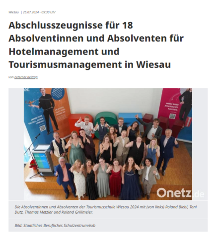 18 strahlende Absolventinnen und Absolventen der Staatlichen Berufsfachschule für Hotelmanagement und Tourismusmanagement in Wiesau durften ihre Abschlusszeugnisse in Empfang nehmen. Dieser besondere Tag markierte das Ende einer intensiven dreijährigen Ausbildung, wie es in einer Mitteilung der Schule heißt. "Dieser Jahrgang hat uns nicht nur mit seinen akademischen Leistungen beeindruckt, sondern auch mit einem außerordentlich starken Gemeinschaftsgefühl", wird Schulleiter Thomas Metzler zitiert.