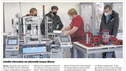 Der Landkreis Tirschenreuth bekenne sich zum Standort Wiesau, erklärte Landrat Roland Grillmeier bei seinem Besuch. Vor einigen Wochen wurde am BSZ ein Kooperationsvertrag „Meisterschule“ für den Fachbereich Rollladen- und Sonnenschutzmechatroniker geschlossen. Daher sei der Bedarf an Wohnungen in und rund um Wiesau ungebrochen, so Bürgermeister Toni Dutz. Einen wichtigen Beitrag für die Attraktivität des Schulstandortes Wiesau leiste das Ausbildungsziel „Bachelor Professional“, informierte Hermann Körner.