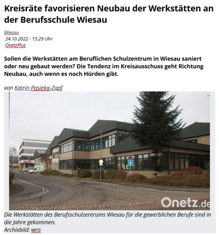 Kreisräte favorisieren Neubau der Werkstätten an der Berufsschule Wiesau