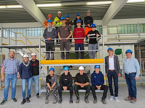 Kürzlich übergaben Vertreter der Herstellerfirma das Schulungsgerüst dem BSZ Wiesau zur kostenlosen Nutzung für Schulungszwecke. Ein besonderer Dank gilt den Mitarbeitern der Peri-Niederlassung Nürnberg mit Frau Liesa Markus und Herrn Philip Büttner, Gerüstbautechniker. Herr Josef Lechner leitete die theoretische und praktische Einweisung des neuen Gerüstsystems.