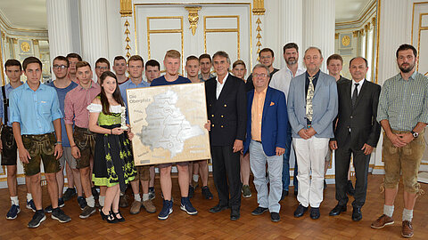 Regierungspräsident Axel Bartelt überreichte 15 Hauptpreise – dotiert jeweils mit 1.000 Euro – und 11 Anerkennungspreise – dotiert jeweils mit 250 Euro – im Spiegelsaal der Regierung der Oberpfalz an die Gewinnerinnen und Gewinner des Wettbewerbs, darunter auch das BSZ Wiesau.