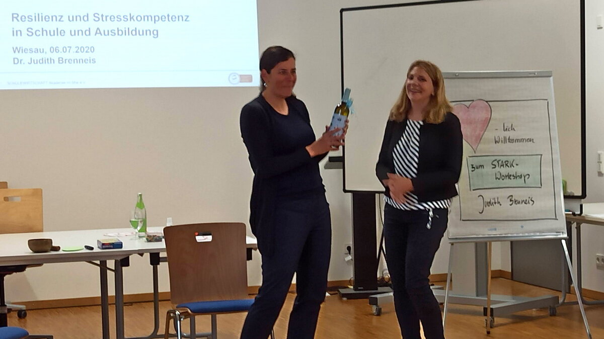 Organisatorin OStRin Kerstin Seuß bedankt sich bei Referentin Dr. Judith Brenneis der Schulewirtschaft Akademie im bbw e.V.