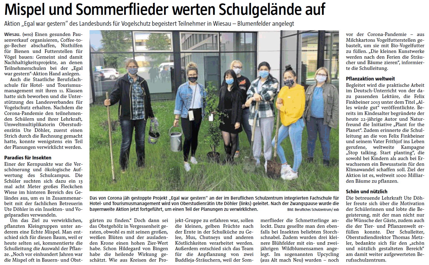 Ein Team der Berufsfachschule für Hotel- und Tourismusmanagement Wiesau nimmt am Projekt des Landesbunds für Vogelschutz in Bayern e.V. (LBV) teil.