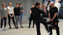 In Kooperation mit dem Verein GR2D - Get Ready 2 Defend vermittelt Nik Landstorfer, der auch die Bayerische Polizei in Selbstverteidigung ausbildet, 27 jungen Damen und Herren der Berufsfachschule für Hotelmanagement und Tourismusmanagement Wiesau die Grundlagen von Krav Maga. Mit viel Spaß und sehr schnellen Erfolgen ist die 12. Klasse dabei.