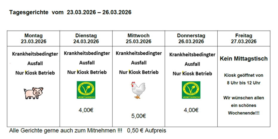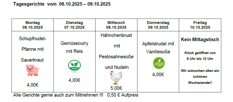 Leckere, gesunde und frisch zubereitete Tagesgerichte (4-5 €) in dieser Woche