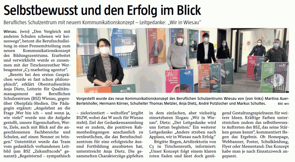 Gemeinsam mit der Agentur C3 hat sich das Berufliche Schulzentrum Wiesau mit seinen Bereichen ein neues Auftreten verpasst.