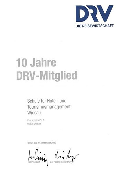 Seit 10 Jahren ist die Schule für Hotelmanagement und Tourismusmanagement Mitglied im Deutschen Reiseverband DRV.